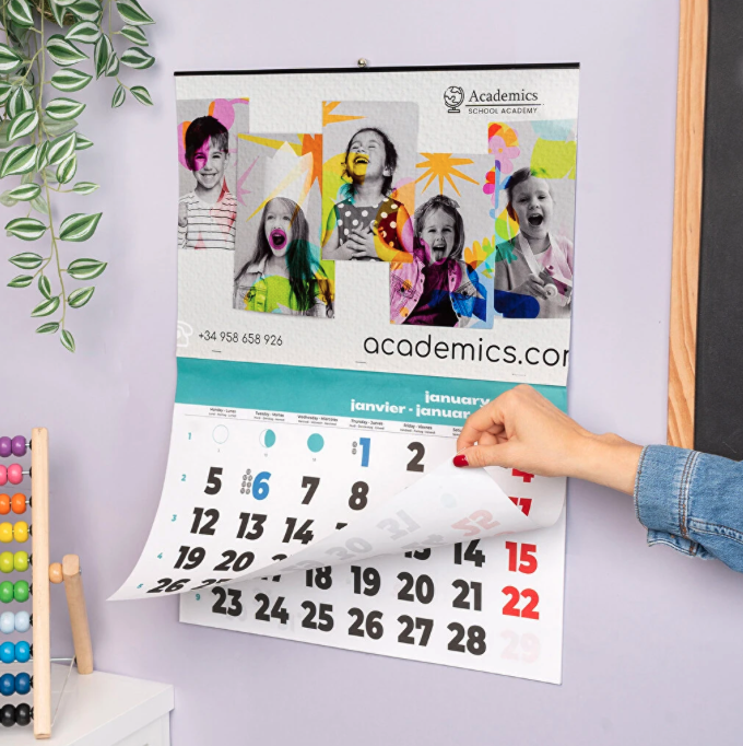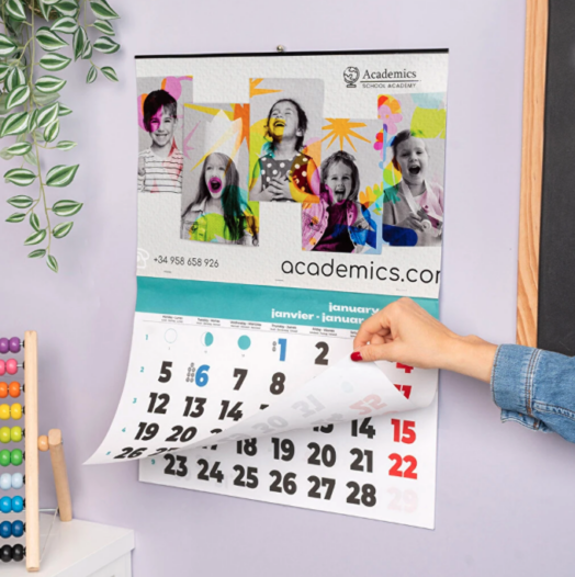 Experimenta con los clásicos calendarios de pared tipo faldilla, pero dándoles un toque más personal. Tu propio calendario de faldilla con fotos, mensajes inspiradores o diseños vanguardistas, creando así un modelo exclusivo que no encontrarás en ninguna otra tienda.